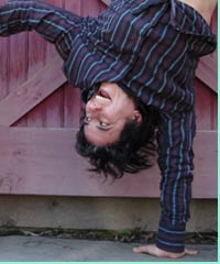 a one-armed handstand, arching limbo, or falling into